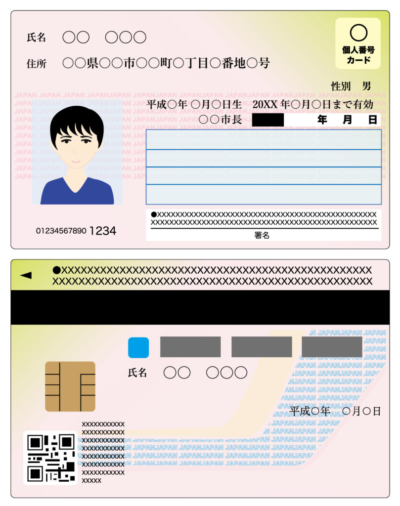 氏名、住所、生年月日、性別、マイナンバー(個人番号)と本人の顔写真等が表示されます。